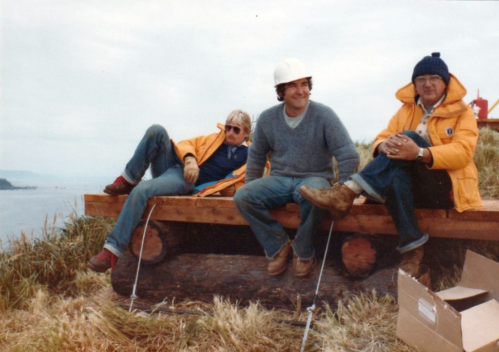 I'm sure today's version has more modern technology and is much safer too. We long lined the logs, lumber and even a small pre-made white fibreglass shed / shelter. We had no idea what to do below a hovering, very noisy, windy helicopter! The pilot looking out the door for our signals / guidance as to where to put the thing! I can't believe that we actually did it. Dave Watson and I installed about five of those MAPS2's that summer. Solander Island off Brooks Pennisula where we saw orca's feeding on salmon. Lawn Point, not far from Estevan Lighthouse where the helicopter chased a bear away from our site, (we hoped he/she would not come back after the copter left!), and Herbert Island in Johnston Strait not far from Cape Mudge Lighthouse. We heard the Cape Mudge Lighthouse fog horns go off, could see the fog rolling towards us, looked for our survival gear, which I guess we forgot to load. We radioed the helicopter pilot in panic, he dropped the load of lumber on the long line into the sea, and got to us quickly just as the fog rolled in and out. Amazing that we survived some of these stories! The cardboard box probably held the tower base plate, and you can just see another pad in the background that probably was a base for the anemometer tower. The fun part for me was helicoptering around the coast looking for good spots, after PWC gave us some general idea of where they thought they need wind info. |